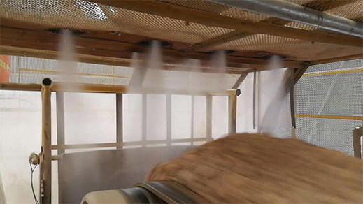 其有五大特點:1.定制化設計,旋轉設備實現連續供水;2.在污染的源頭,即起塵點進行粉塵治理,無二次轉運污染;3.尤其針對 10μm 以下可吸入性粉塵,治理效果高達90%;4.霧顆粒大多為10μm 以下,耗水量小,物料濕度重量比不大于0.5%;5.干霧抑塵設備投入少,占地面積小,全自動操作,運行維護費用低。